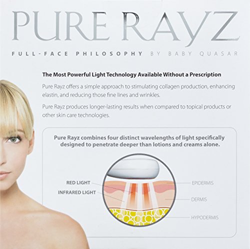 Pure Rayz is the most advanced FDA-cleared "anti-wrinkle" skin care tool available for home use. It is designed for effortless anti-wrinkle treatment, caused by depleted collagen and weakened elastin around the eyes, brows and mouth, and everywhere in between. Its large treatment head allows for maximum application of light along the intricate contours of the face. The amount of power emitted by Pure Rayz is four times stronger than any of our competitors. More power means better results. By using another device, it would take years to catch up to the results you would achieve by using Pure Rayz and there’s no guarantee you would. Our technology offers a safe and natural approach to the treatment of aging skin. It’s cleared to work on all skin types and tones, without the need for down time. Treatment is easy. With Pure Rayz, it takes only eight weeks at five treatments per week to see results then just twice per week for maintenance. Each treatment takes less than 15 minutes; 3 minutes per area. Gently press the illuminated side against your skin. Move in a slow circular motion across the first section of your face. You should feel a pleasant, warm sensation. An automatic timer lets you know when to move to the next section of your face.Feature