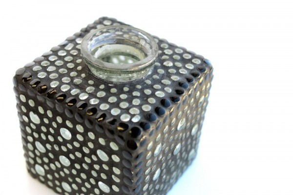 | 石膏にガラスでモザイク模様を描きました。点灯時と消灯時で違った表情が楽しめます。※ハンドメイドのため、ガラスやビーズの色・配置等は少しずつ異なります。なお、ビーズの色味は製品により多少変わる場合があります。 |