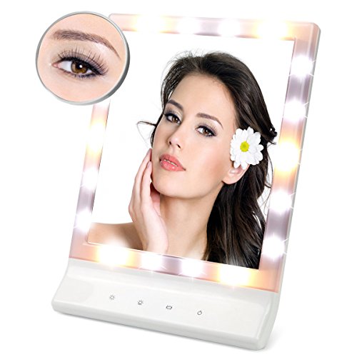 LED Lighted Makeup Mirror with Removable 10x Magnifying - ASSIS Vanity Mirror Led Cosmetic Mirror, Smart Touch Makeup Mirror with Light (18 LED) , Wall Mount Make Up Mirror