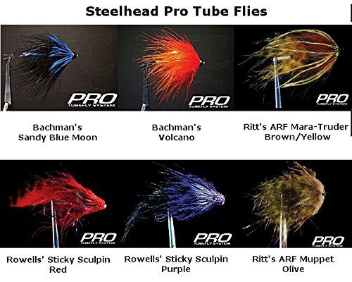 -. Feature : 6 quality Steelhead Pro Tube Flies tied by Montana Fly Company / Bachman's - Sandy Blue Moon, Bachman's - Volcano, Ritt's ARF Mara-Truder - Brown/Yellow / Rowells' Sticky Sculpin - Red, Rowells' Sticky Sculpin - Purple, Ritt's ARF Muppet Olive / Innovative and professionally tied flies / Endorsed by the owners of Dream Drift Flies