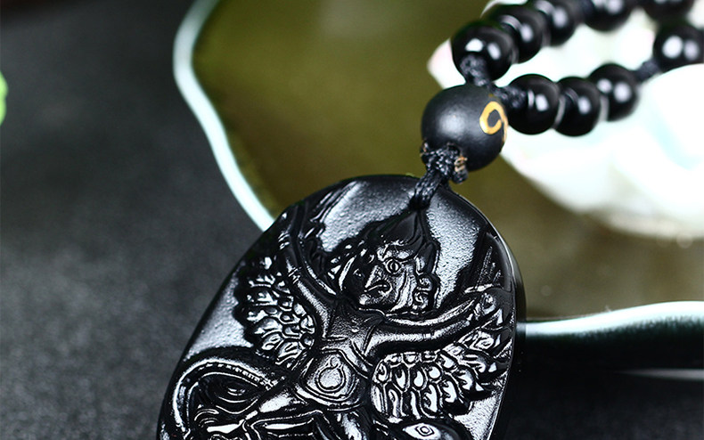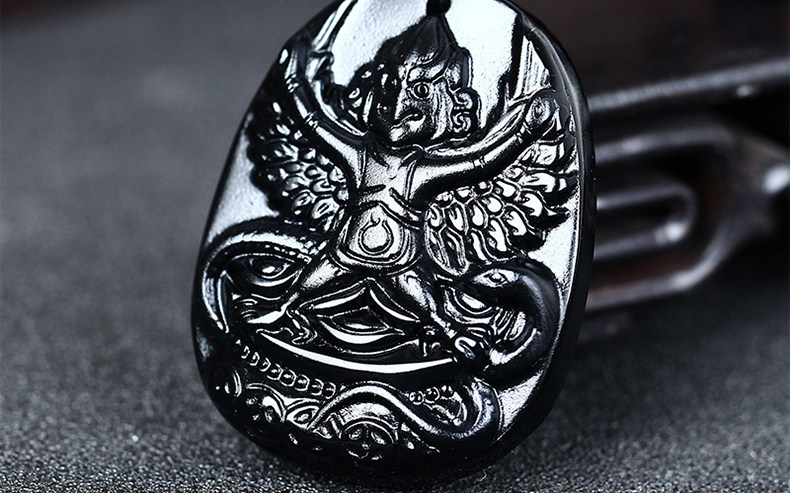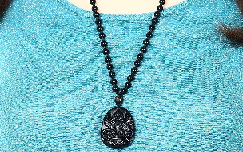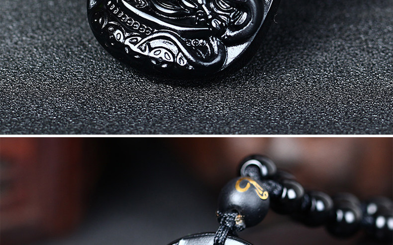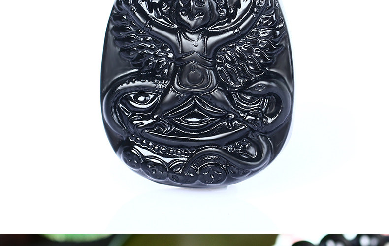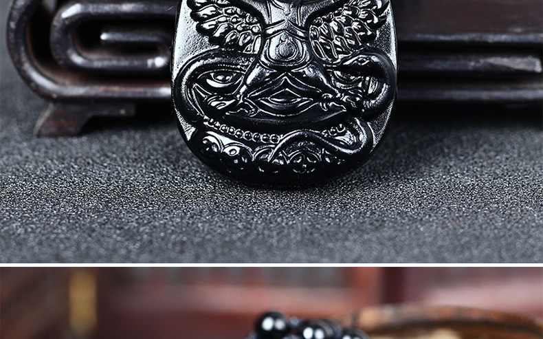 开光生肖属蛇吉祥物鸿运添宝开运金曜石吊坠金翅献珠黑曜石吊坠