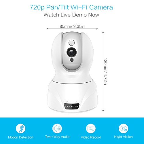 Aiguozer 720P Home Wifi Wireless IP Camera Video Baby Monitor Security Camera Surveillance System Plug/Play,Pan/Tilt, Night Vision,Motion Detection, Two-Way Audio (White)