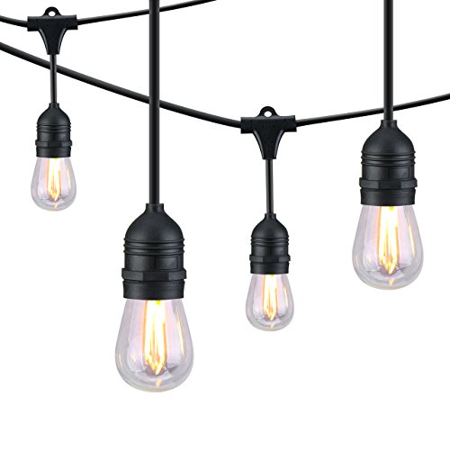 Mpow Outdoor String Lights, 49Ft LED Ambience Added Lights, Sturdy Connectable Weatherproof Dimmer Compatible Strands, 15 Edison Vintage Bulbs, for Patio, Cafe, Porch, Deck, Bistro, Garden - Black