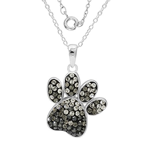 Crystalogy Sterling Silver Swarovski Crystal Dog Paw Animal Pendant, 18" Fashionable trendy women's Crystalogy Sterling Silver Black and Clear Swarovski Crystal Dog Paw Animal Pendant Necklace tops off your dresses, blouses and tops. This necklace has an 18 inch chain with a spring ring clasp, allowing you to create a layered jewelry look if you choose. This pendant necklace is perfect for formal affairs, casual parties or even every day wear. This fashion necklace comes gift boxed making for a perfect gift for any women including your daughter, sister, granddaughter, niece or any loved one.Feature
