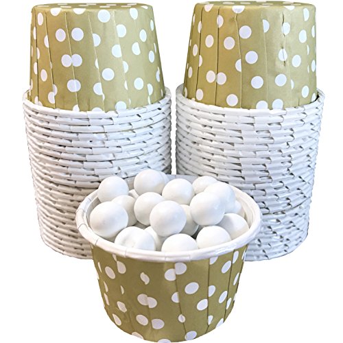 Candy Nut Mini Baking Paper Treat Cups - Gold and White Dot - 2 x 1.5 Inches