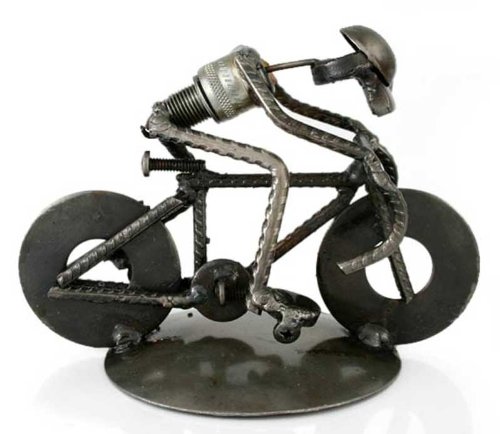 NOVICA Metallic Recycled Metal Sculpture, 4.5" Tall 'Rustic Cyclist'