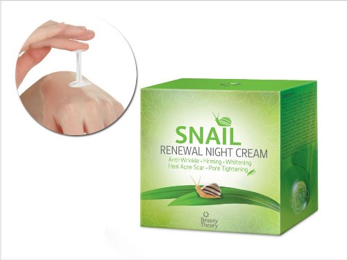 -. Binding : Misc. -. Brand : Beauty Theory -. EAN : 0880533093478 -. Feature : This Snail extract helps remove new and old stretch marks , firming reduces fine facial lines and wrinkles and renews skin and repairs acne scarring , minimizing acne , pore tightening . / This product brings hope to acne scar sufferers and those who suffer from stretch marks . / Ultra nourishing , fight wrinkles and stimulates the production of skin proteins , intervened in the metarbolism of collagen and preventing actively aging . / Various plant extracts help skin to keep healthy by rich moisturizing , nourishing ,and protecting skin. / ship from Thailand -. ProductGroup : Beauty -. ProductTypeName : BEAUTY -. Title : Beauty Theory : Snail Renewal Night Cream 50ml , Anti - Wrinkle , Firming , Whitening , Heal Acne Scar , Pore Tightening , Premium product Made in Korea -. UPC : 880533093478