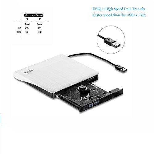 - [HIGH SPEED] Rioddas external CD drive is compatible with USB3.0 and backwards compatible with USB2.0 USB1.0,bringing you faster data transmission speed (up to a maximum of 5Gbps) and stable performance with strong fault tolerance