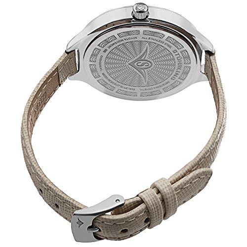Polished stainless steel round shaped case with champagne lizard embossed genuine leather strap