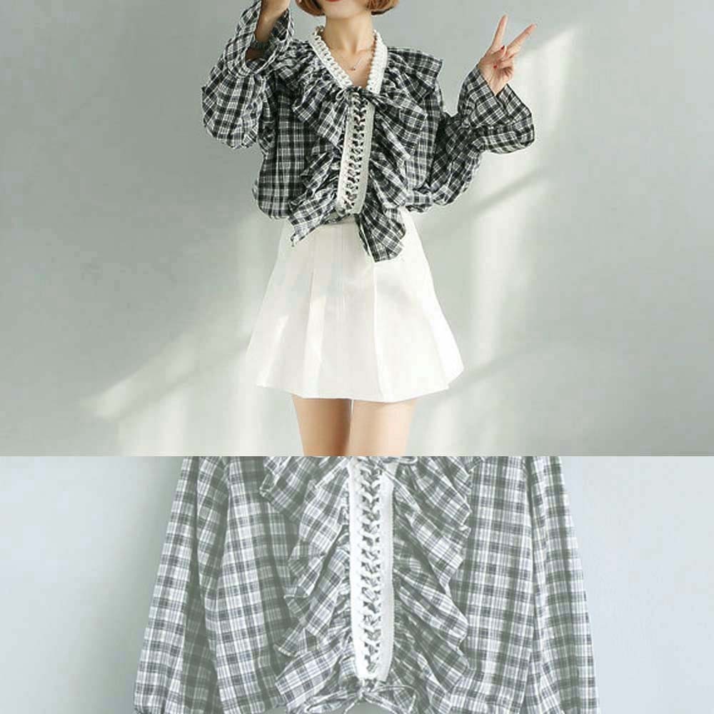 落ち着いた色合いがお上品なチェック柄ブラウス