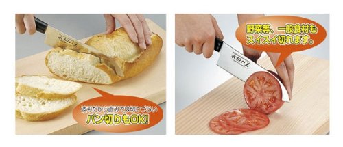 특수한 파인 saw 가공으로,갈지 않아도 칼이 드는 정도 지속!일반직인의 약10배 길게 끊어진다!칼끝이 조금 마모하여도파칼이 남아 있는 한,칼이 드는 정도는 지속합니다.끈기가 있는 숲《부덴바나지우무》강이기 때문에 물고기의 뼈 자르도 OK!야채 등,일반식재도 휙휙 끊어집니다.파칼이기 때문에,직칼에서는 자르기 어려운 빵 자르도 OK!핸들은 항균 가공이기 때문에 안심.또한 내열의 재질이기 때문에,식기세척기나 식기 건조기의 사용도 OK입니다.