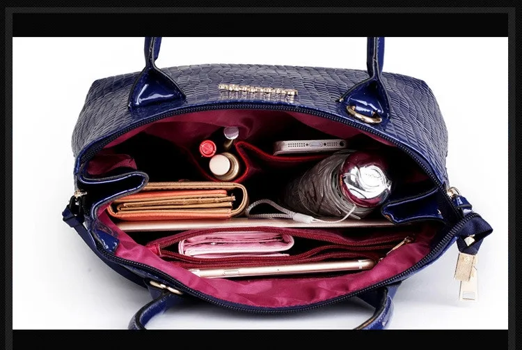 6 PCS/Set Women Bag Crocodile Pattern Composite Bag Stone Women Messenger Bags Shoulder Handbag Purse Wallet PU Leather Handbags