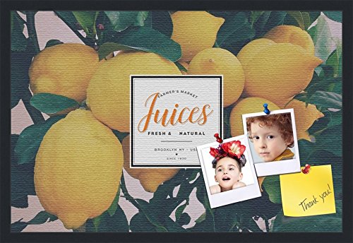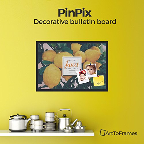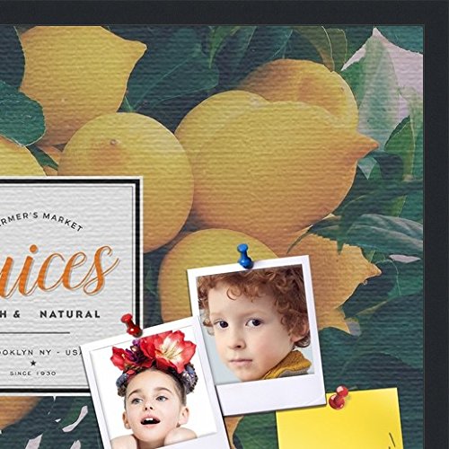 PinPix decorative pin cork bulletin board made from canvas, Recipe Board with Lemon Tree 30x20 Inches (Completed Size) and framed in Satin Black (PinPix-Group-36)