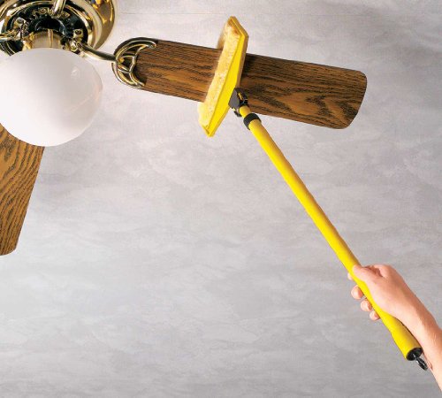 Studio : Miles Kimball Publisher : Miles Kimball Binding : Health and Beauty Product Description Use this ceiling fan duster to clean your fan safely, without climbing a ladder or standing on a chair. The plastic handle of the ceiling fan cleaner extends to 43"; two plush 7" rollers slip over blades to clean and dust both sides at once. Washes easily with mild soap. 0