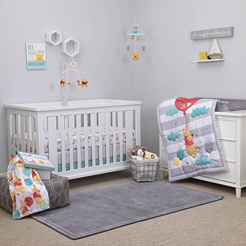 Surround your baby with very first friends Pooh Bear, Tigger, and Piglet with the Disney Baby Winnie the Pooh First Best Friends 4pc crib bedding set