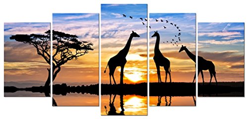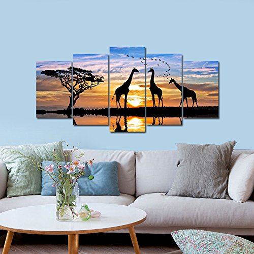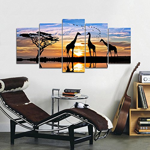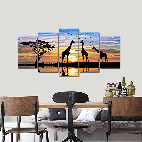 -. Title : Pyradecor 5 panels Modern Stretched and Framed Landscape Giclee Canvas Prints Sunset Artwork Pictures Paintings on Canvas Wall Art Ready to Hang for Bedroom Kitchen Home Office Decorations AH5031