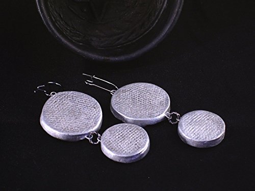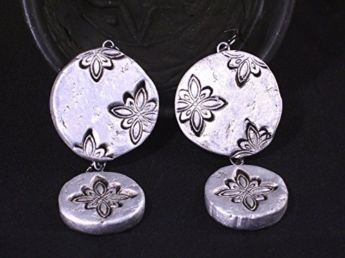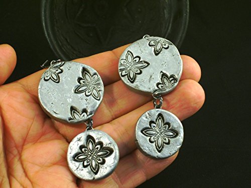 -. Title : 2.5" Snowflake Statement Earrings Distressed Silvertone Dangle Handmade Ceramic Clay Art Jewelry Rustic Christmas Holiday Round Chunky