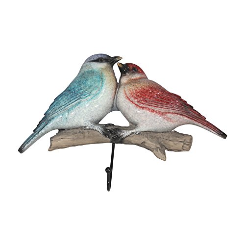 Comfy Hour 6" Two Sparrows Standing On Wood Single Key Hook Decorative Wall Hanger, High Gloss Finish, Screws Included