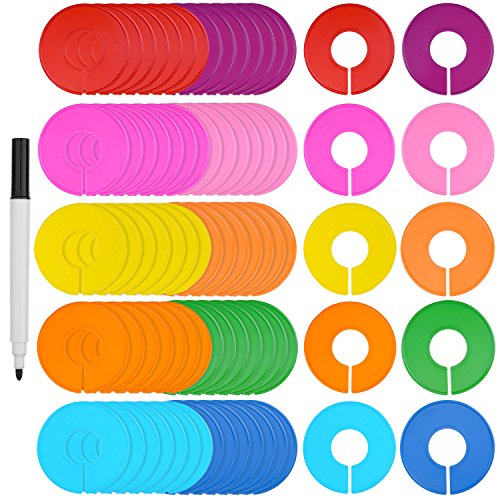 Blulu 80 Pieces Colored Blank Closet Size Dividers Round Clothing Rack Dividers with Marker Pen, 10 Colors