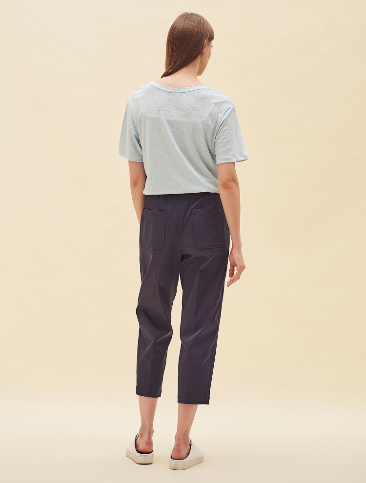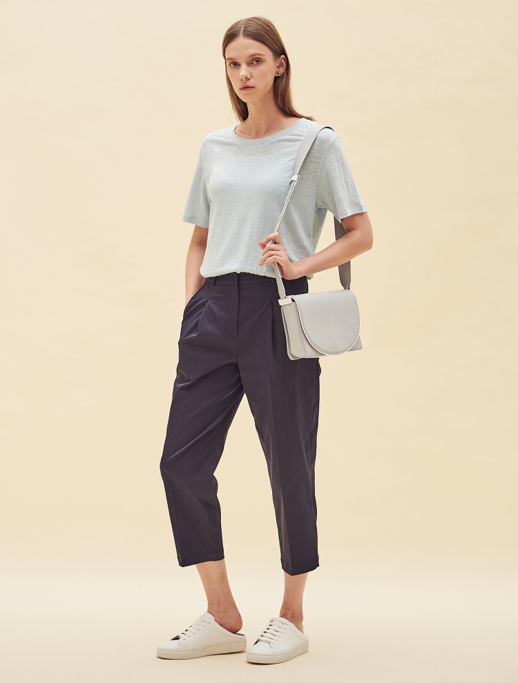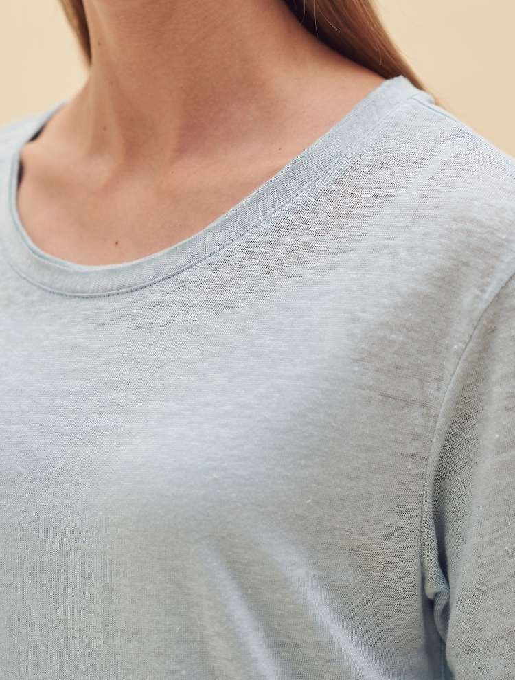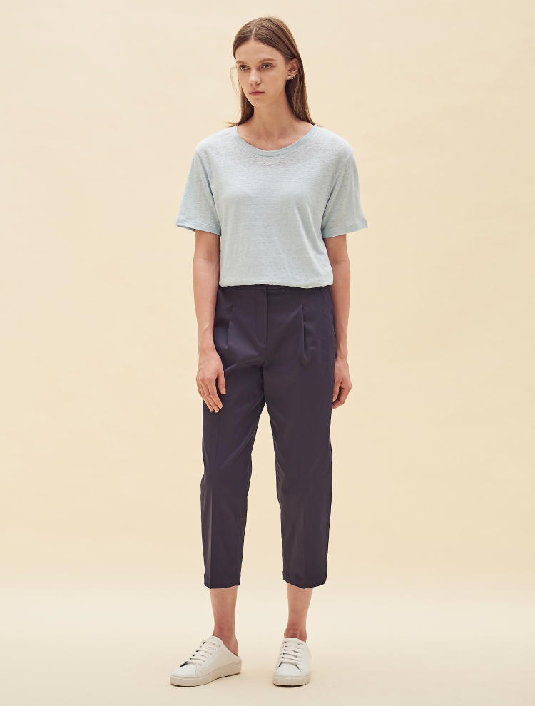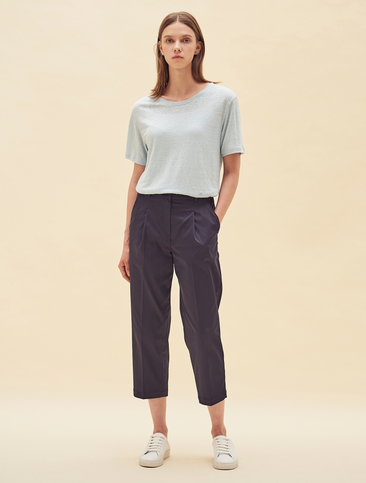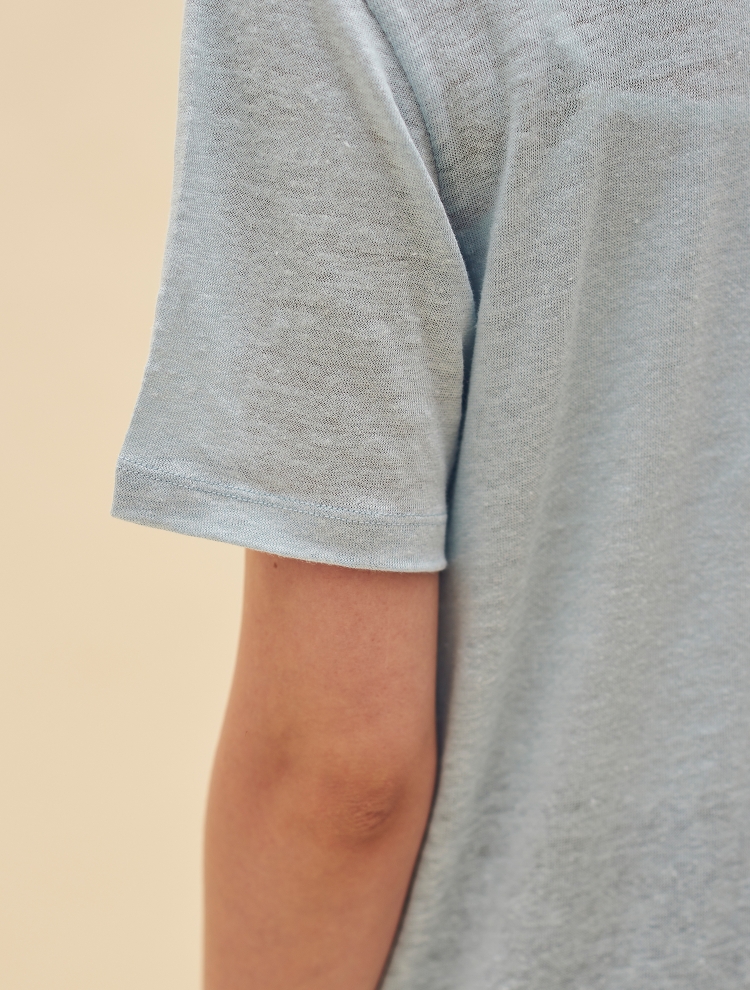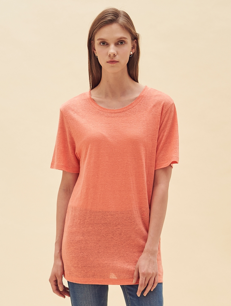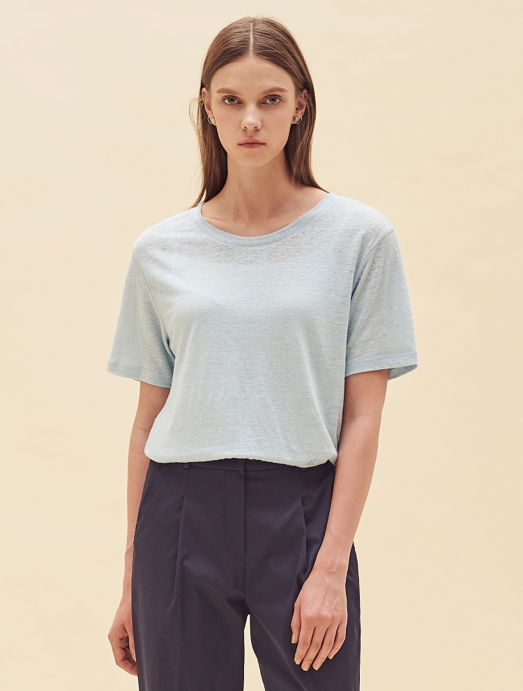 - 리넨 소재의 베이직한 기본 티셔츠로 네크 라인 이중으로 처리되어 디테일을 더한 제품입니다.