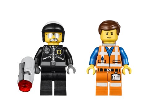 It's high-speed action as bad cop chases emmet along the train tracks in his flying police car. flip out the lasers under bad cop's car hood and unleash the laser cannons hidden underneath the doors. watch out for the collapsing train bridge! there's double trouble as bad cop fires his new blaster and the poseable robo crocodiles with huge snapping jaws and police lights on their back wait below. and when all seems lost for emmet, turn the head on bad cop to transform him into good cop! includes 2 minifigures with a weapon and assorted accessories: emmet and bad cop.Feature