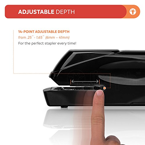 14-POINT ADJUSTABLE DEPTH - Giving you an effortless, perfect staple each time! Which means nice, neat and organized papers. With a lift of the finger you can simply lock in your desired depth, ranging anywhere from .25" to 1.65" (6mm-42mm)