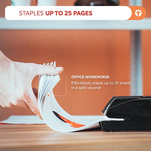 TRUE STAPLING WORKHORSE - With a Jam-Free Guarantee, and boasting a 25-sheet high capacity, and a heavy duty commercial grade build, you will never punch a manual stapler again and can now staple those papers day in and day out without batting an eye!