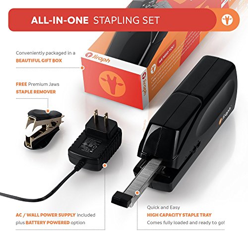 FULL STAPLING SET - Including the awesome, quick and quite electric stapler itself, a handy dandy staple remover, and to top it off, delivered fully loaded with staples so you are ready to go straight out of the gorgeous gift box!