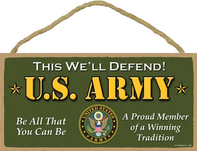 (SJT13072) U.S. Army - This we'll defend! - Be all that you can be - A proud member of a winning tradition Primitive 5" x 10" Wood Plaque Sign