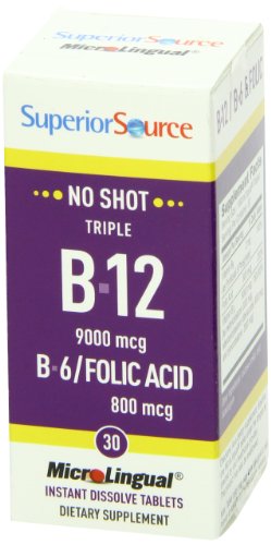 -. Binding : Health and Beauty -. Brand : Superior Source -. Label : SUPERIOR SOURCE -. Manufacturer : SUPERIOR SOURCE -. PackageQuantity : 1 -. ProductGroup : Health and Beauty -. ProductTypeName : HEALTH_PERSONAL_CARE -. Publisher : SUPERIOR SOURCE -. Studio : SUPERIOR SOURCE -. Title : Triple B-12 (9,000mcg) + B-6 & Folic