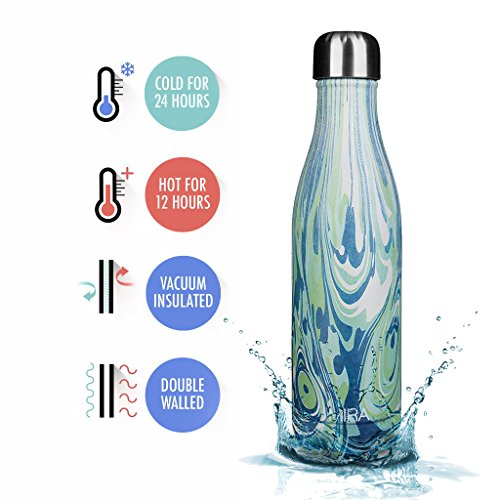 MIRA Vacuum Insulated Travel Water Bottle | Leak-proof Double Walled Stainless Steel Cola Shape Portable Water Bottle | No Sweating, Keeps Your Drink Hot & Cold | 17 Oz (500 ml)