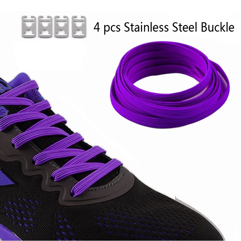 BSAID 1 Pair Elastic No Tie Shoelaces With 4pcs Stainless Steel Buckle For Women Men Sneakers,DIY Lace Styling Shoe Laces For Casual Shoes