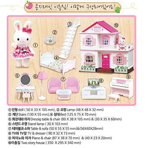 Cute rabbit characters like children Two-story house and rabbit doll set Recommended for children's present Material : ABS,PP,PVC.Polyester Recommended age for use : more than 36months