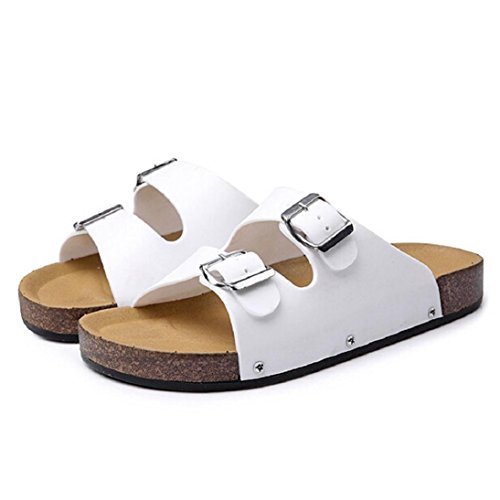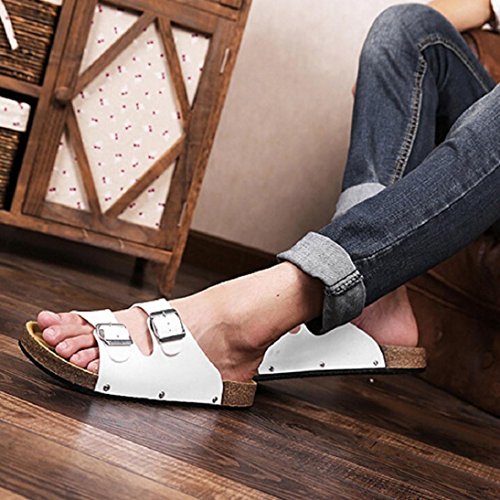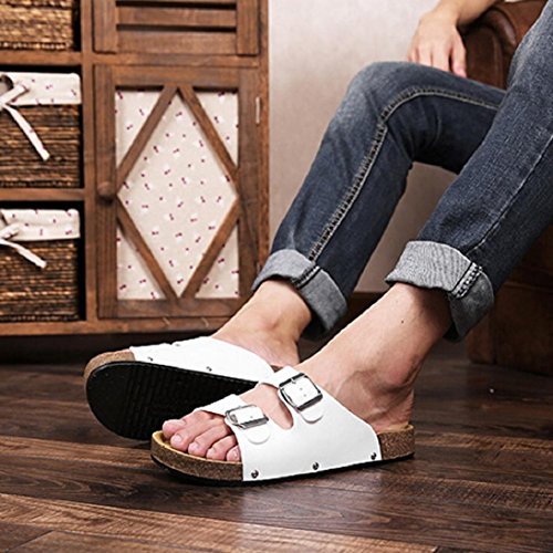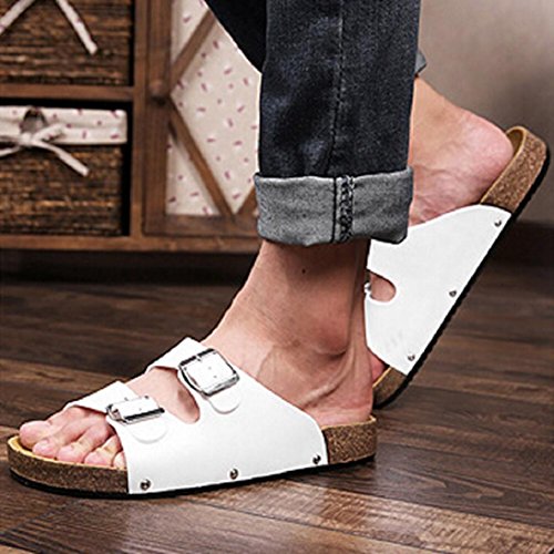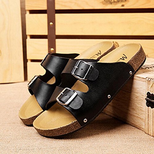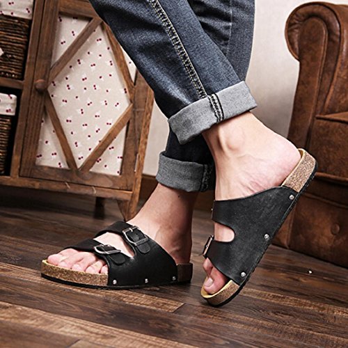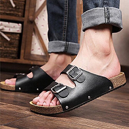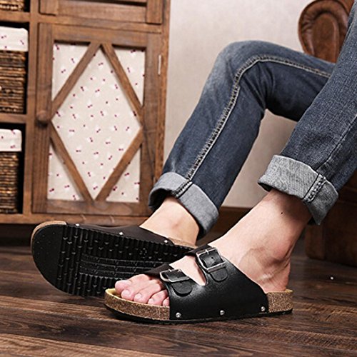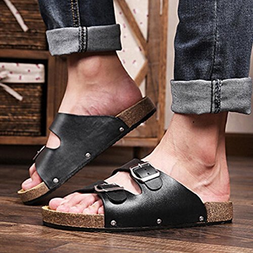 -. Title : Fheaven Men Open Toe Leather Casual Flat Flip Flops Two Buckle Strap Summer Beach Slippers