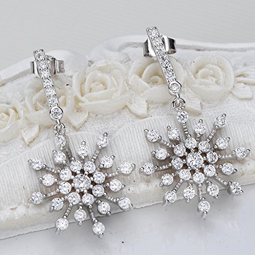 -. Title : EleQueen 925 Sterling Silver Winter Snowflake Bridal Drop Earrings
