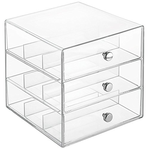 - Title : mDesign Cosmetic Organizer for Vanity Cabinet to Hold Makeup, Beauty Products - 3 Drawers, Clear
