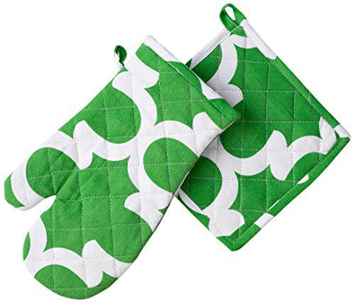 LinenTablecloth Green and White Trellis Oven Mitt/Pot Holder, 4-Pack