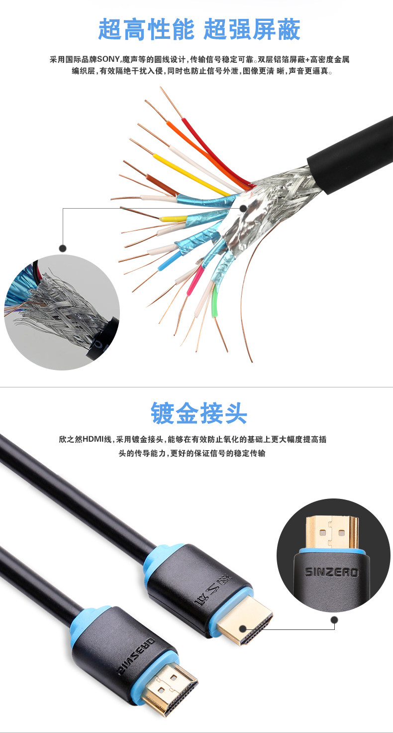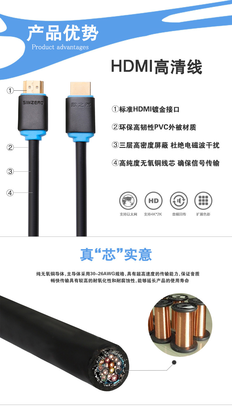 4k高清 3D视效 纯铜线芯 多重屏蔽 高速传输