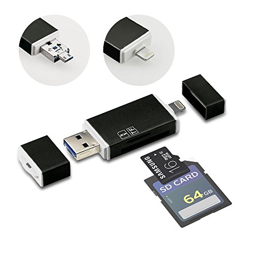 【3-IN-1 CARD READER】GiBot Card Reader compatible with all devices with Lightning connector, Micro USB or USB3.0 adapter for iPhone, iPad, Android smartphone,Mac,PC,Laptop