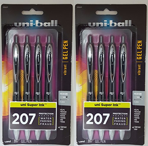 -. Title : Uni-ball 207 (33960PP) Retractable Gel Pens, Medium Point, Black Ink, 4 Pack (Set of 2 Packages)