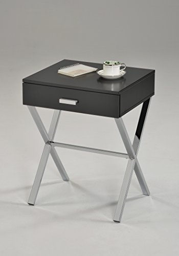 Studio : eHomeProducts Publisher : eHomeProducts Product Description Combining solid/composite wood construction with a modern style, this versatile end table/night stand makes a fresh and clean addition to the room. The tabletop features straight edges, while below the two metal X legs supports the table top. Comes in white finish that makes this table stand out. Features one drawer for storage. Measures 19"W X 16"D x 24"H. 0