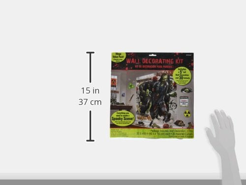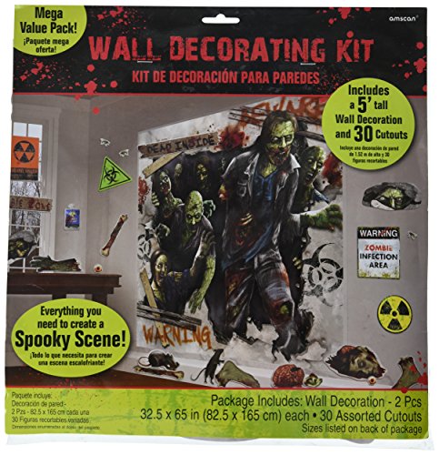 Amscan Zombie Apocalypse Halloween Trick Or Treat Party Scene Setters Mega Value Wall Decorating Kit (32 Piece), 65" X 32 1/2", Multicolor