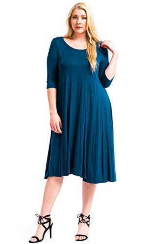 Modern Kiwi Long Sleeve Flowy Maxi Plus Size Dress Teal 1X