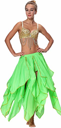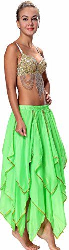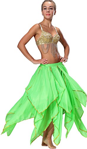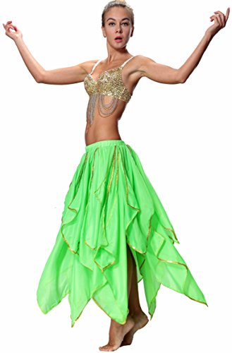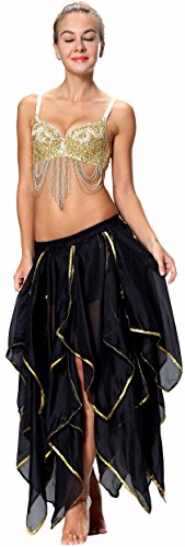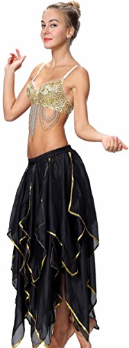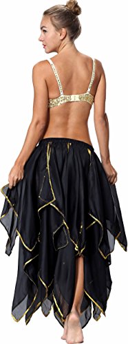 -. Feature : IN-KIND SHOOTING - The model is 5'9''. You can check the skirt length. Skirt length is 37" and the elastic skirt waist stretches 25" to 37". It fits US2, US4, US6, US8, US10, US12 and US14 / 16 PANEL WITH GOLD SEQUINS - the 16 panel belly dance skirt is made in the classic style for classic Raqs sharqi. It's perfect for spinning and doing dynamic moves as the skirt highlights the dancer's movements. The flowy panels move beautifully with any hip movement. The Gold sequins on the skirt flicker like flames under the stage lights and look amazing with every spin, gives just the right amount of shimmer and bling. / IT'S NOT ADJUSTABLE, BUT IT'S FLEXIBLE - This has elastic in the waist and can stretch enough to be layered on top of harem pants and other skirts for a more traditional look. There is a line under the skirt like the photos show. / It's perfect for belly dance, Raqs sharqi. You can also wear it for other parties like Renaissance Festival, masquerade, Halloween, etc,. / PACKAGE INCLUDES - 1 Skirt (The top bra is not included)