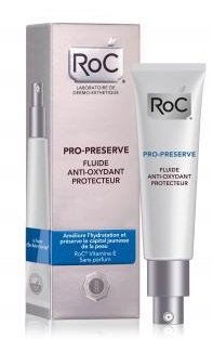 -. Feature : Roc Pro-Preserve Anti-Oxidant Protecting Fluid 40ml is a moisturizing fluid to preserve the youthful capital of the skin. Combining several antioxidant actives, vitamins E and C, it allows to protect the skin from external aggression. Anti UVA-UVB filters help the skin to prevent cutaneous skin aging. / Moisturized, the skin appears younger, the youthful capital is strengthened and preserved. / Fragrance-free. High tolerance.