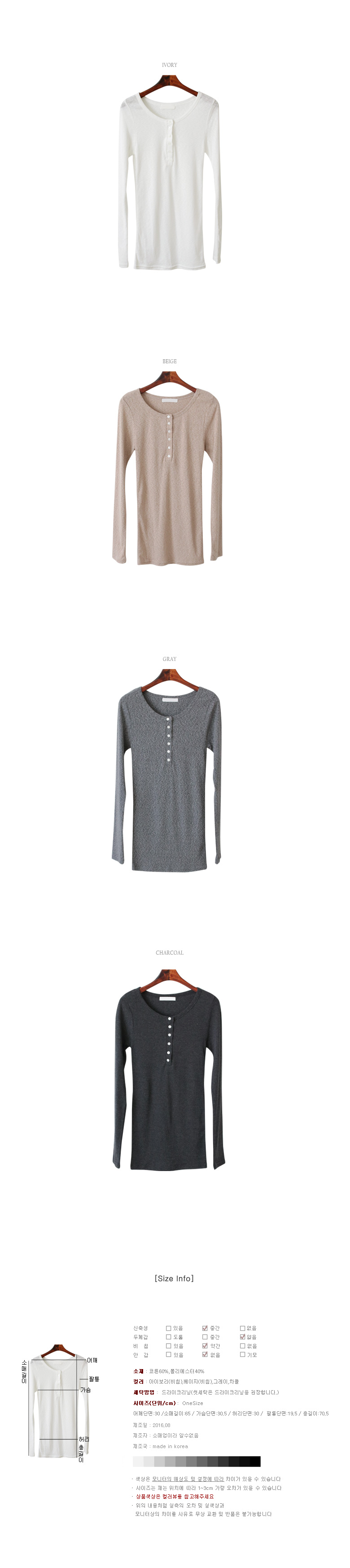 [Product info] 슬림한 바디라인을 더욱 예쁘게 살려주는 메이블버튼티셔츠 소개해드릴게요:) 베이직한 기본디자인의 티셔츠에 가슴까지 내려오는 단추 디테일이 포인트구요~ 단추를 다 채우면 깔끔한 라운드 넥이예요 네크라인의 목 파임이 조금 있긴한데 많이 파인 정도는 아니구요~ 적당히, 시원하게 파이면서 쇄골라인을 드러나게 해주어 여성스러워 보이기도 해요 타이트한 핏으로 슬랙스나 청바지,스커트와 함께 매치해주면 좋구요~ 티가 얇아 가디건이랑 함께 입어주셔도 좋아요^^ 단품으로 착용시에 버튼을 하나정도 풀어주셔도 매력있더라구요~ 타이트하지만 신축성이 있어서 탄탄하게 바디라인을 강조해준답니다^^ 아이보리와 베이지 컬러는 비침이 있는 컬러이니 이점 참고해주세요:) 사이즈는 55-66이신분들까지 굿초이스 해주세요:)