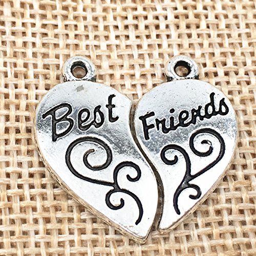 YYaaloa 12 pairs ''Best Friends'' Love Heart DIY Charms Pendant for Crafting Jewelry Making Accessory (12ps Best+12pcsFriends)