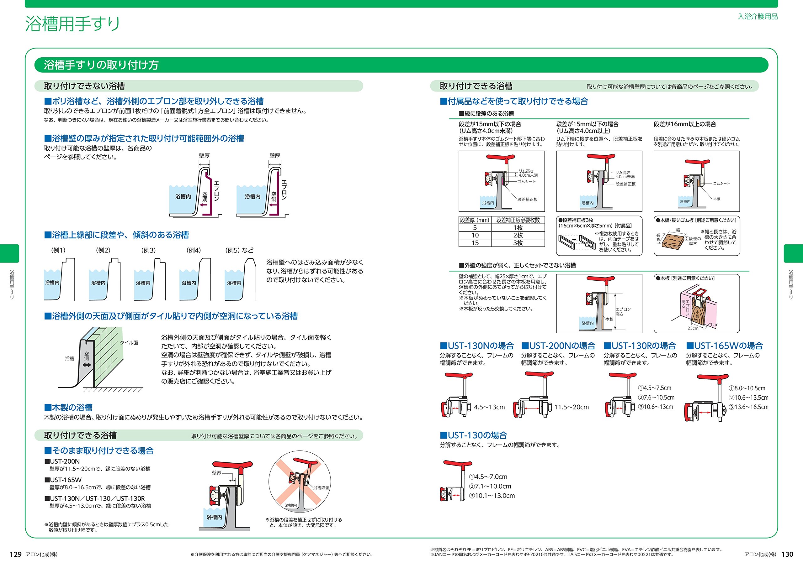 Aronkasei AnHisashi bathtub handrail UST-130 Blue with height adjustment