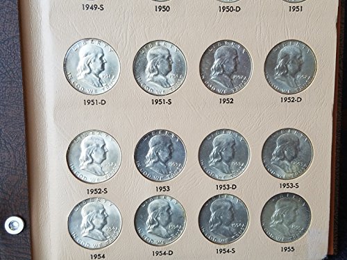 Complete Set Mint State 1948 to 1963 PDS Brilliant Uncirculated Franklin Halfs 35-Coins in Dansco Album BU to Choice BU