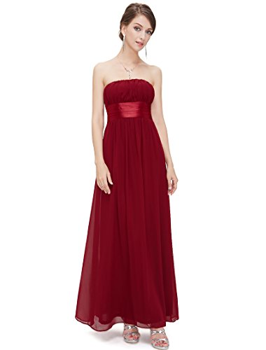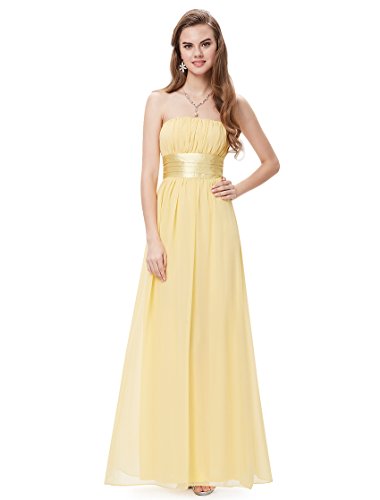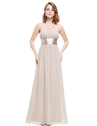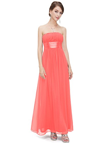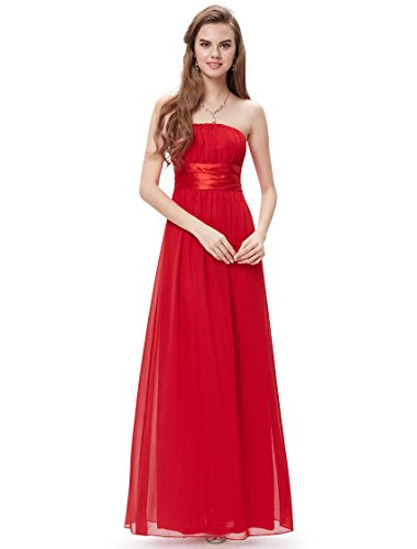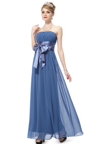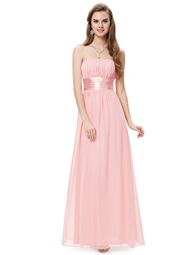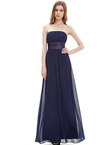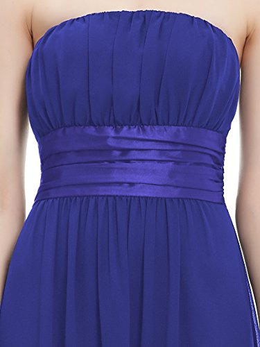 Very dressy design makes you gorgeous in the evening.Sheer chiffon fabric outside layer and fully lined in polyester.Sexy strapless style with satin ribbon tie around the waist.Elastic band sewn at the top of the dress help hold the dress up.Feature